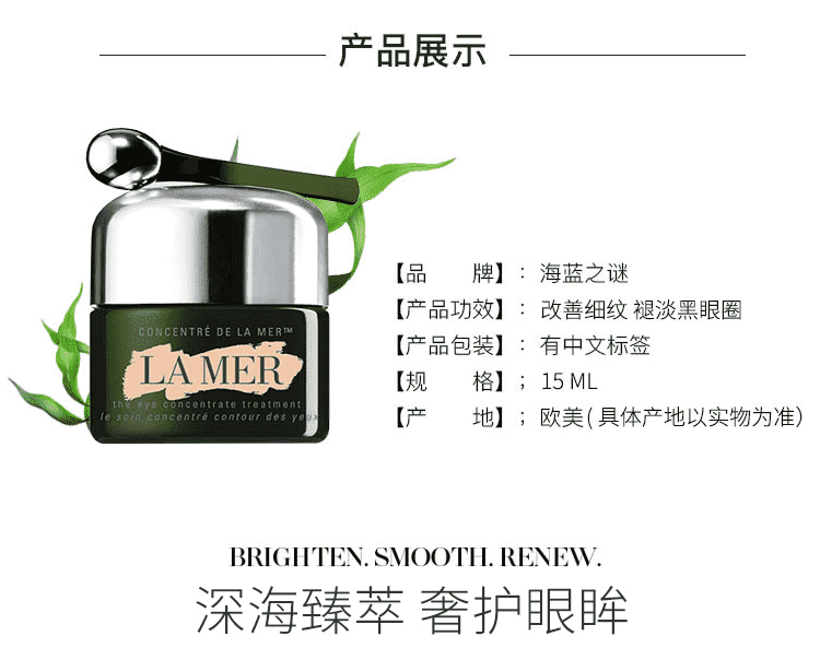 海蓝之谜(LA MER)浓缩密集修护眼霜15ml(褪淡黑眼圈) 精美礼盒 送女友 送爱人