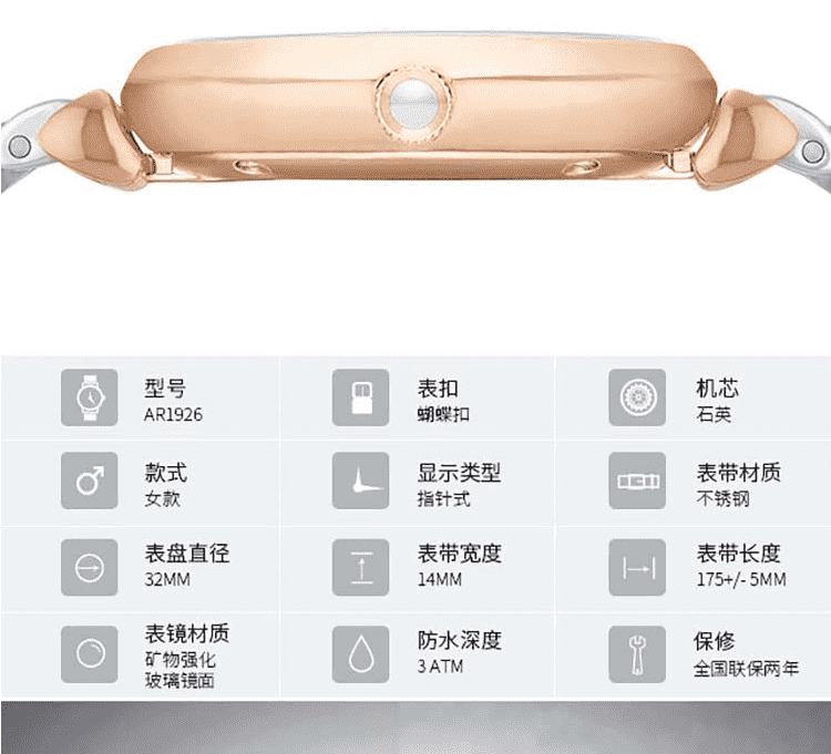 阿玛尼(EmporioArmani)满天星手表 钢制表带 圆形镶钻石英轻奢时尚女士手表 AR1926