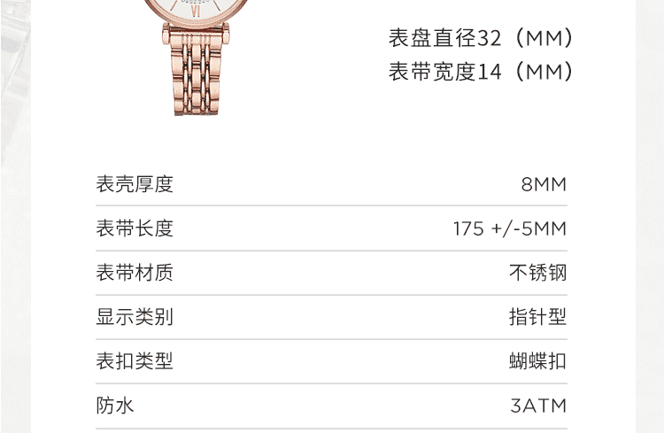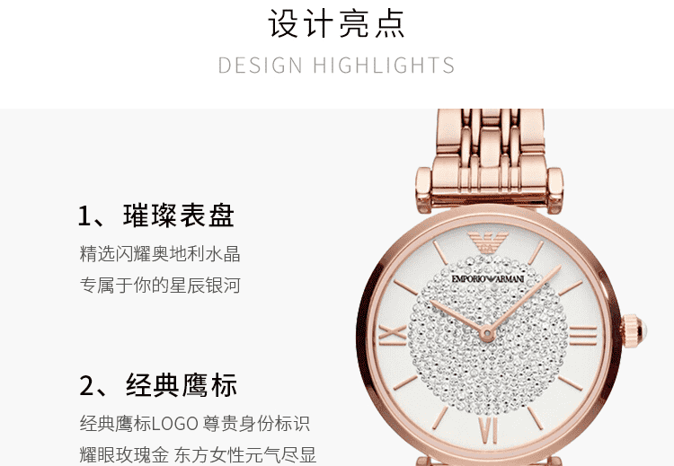 阿玛尼(Emporio Armani)满天星手表女士明星同款 欧美时尚石英腕表 生日礼物送女友 玫瑰金满天星 AR11244