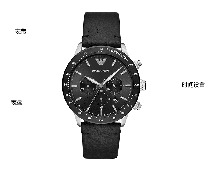 阿玛尼(Emporio Armani)酷黑皮带时尚休闲欧美表多功能男士石英腕表AR11243 送男友礼物 生日礼物