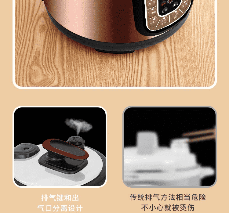 3. 智能感温控压技术,自动调节压力,螺纹发热盘精准控制,不用担心烹煮时间;