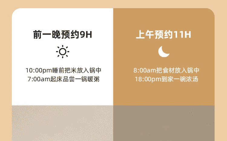 1. 11大种烹饪功能,煮饭、煲汤、无水炖鸡、快速煮/蒸等;
