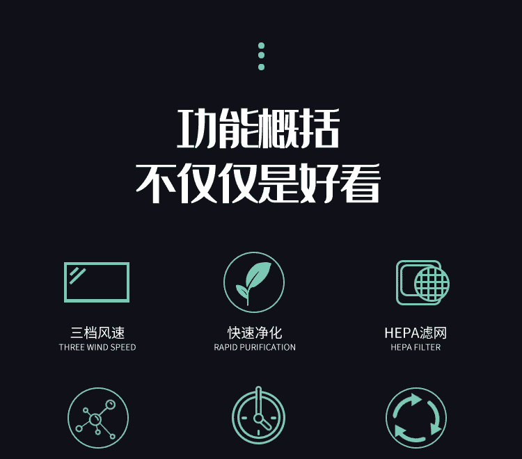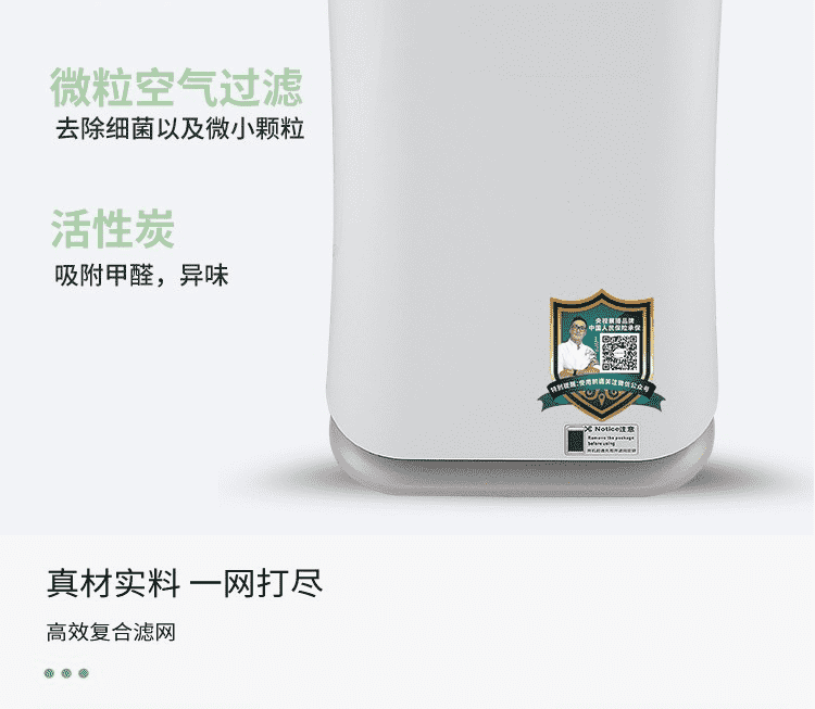 高效复合HEPA滤网,强效净化,负离子发生器杀菌,远程智能遥控;