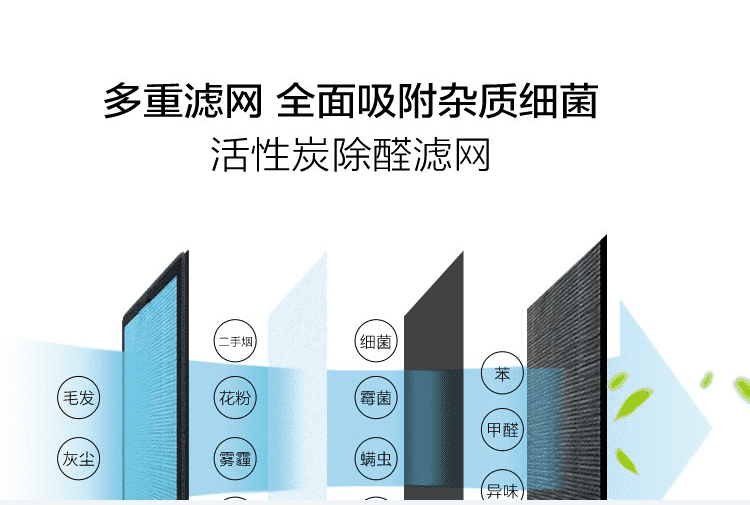 有效过滤灰尘,雾霾,甲醛,二手烟,PM2.5,让空气更清新;