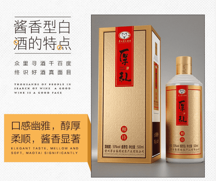 贵州茅台集团 厚礼相待酒 酱香型白酒53度 500ml*6 瓶装金色包装 收藏送礼