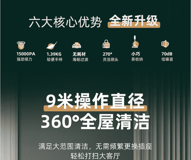海尔旗下贝立安有线吸尘器600W大功率含双滤芯V100