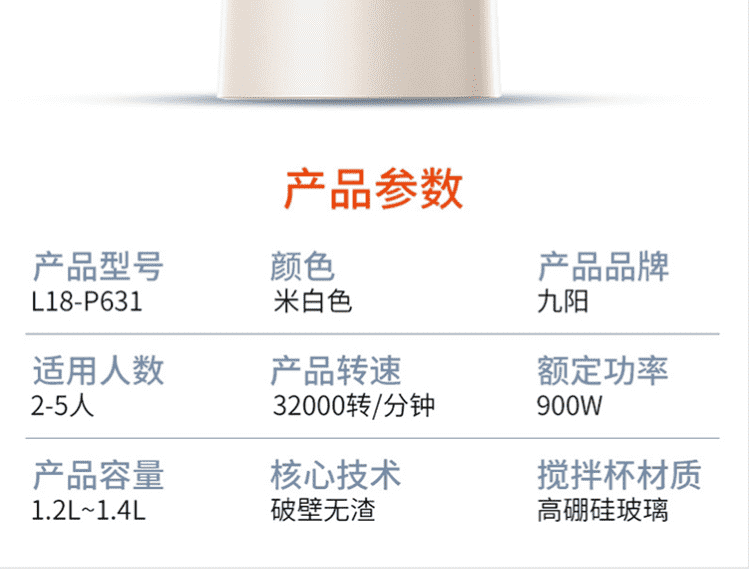 九阳破壁机破壁机家用多功能加热料理机搅拌机婴儿辅食机豆浆机榨汁机 L18-P631