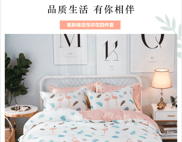 寝公馆家纺 氧肤棉斜纹印花四件套 200*230cm 双人大床床上用品【下单备注款式:\ 爱情鸟 \ 豆蔻年华 \ 甜恋之心 \】