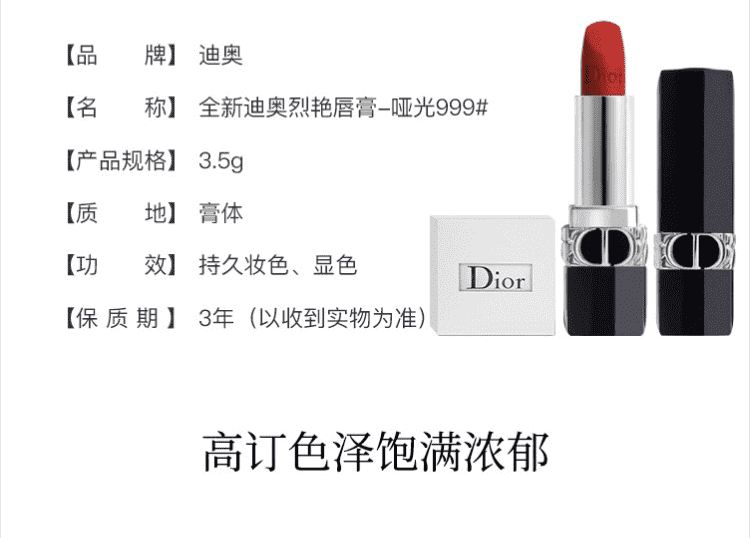 包邮 克丽丝汀迪奥烈艳蓝金唇膏999 哑光 3.5g-新款口红 一般贸易 生日礼物