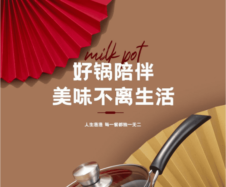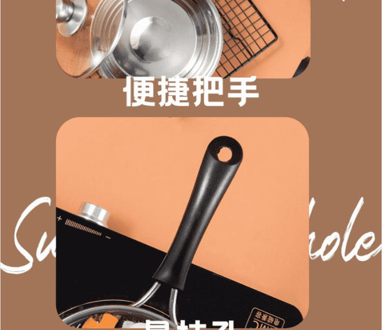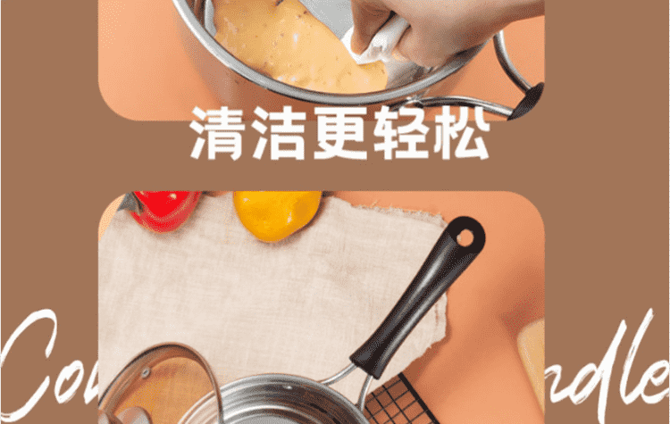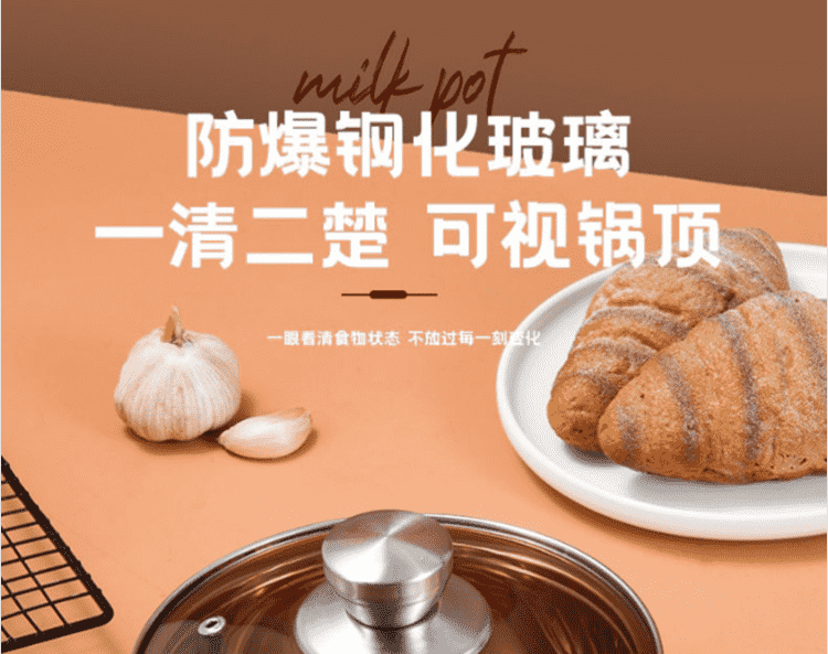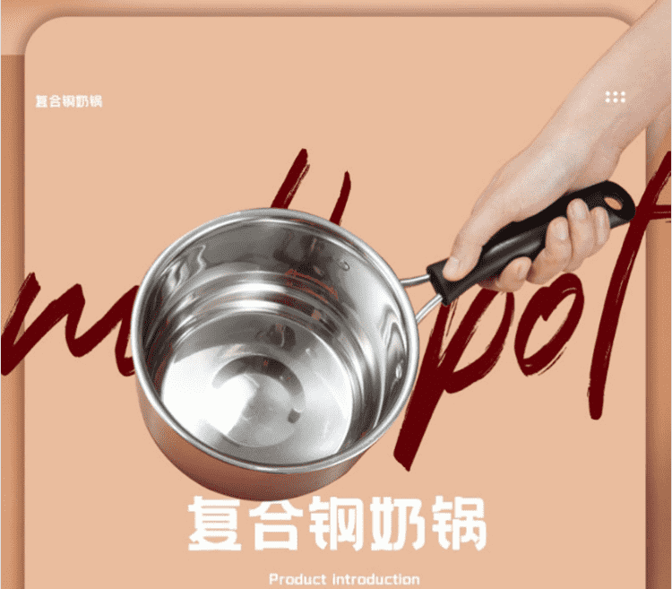 厨至尊18CM特厚复合钢不锈钢奶锅汤锅家用电木防烫单柄奶锅