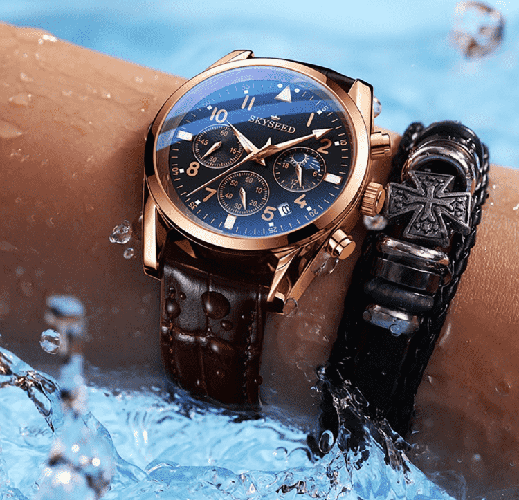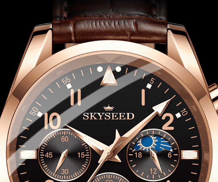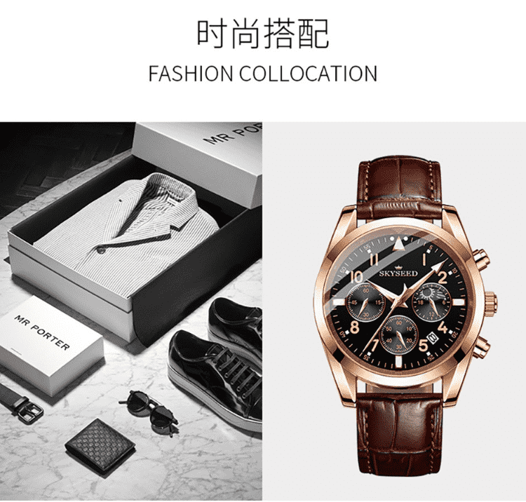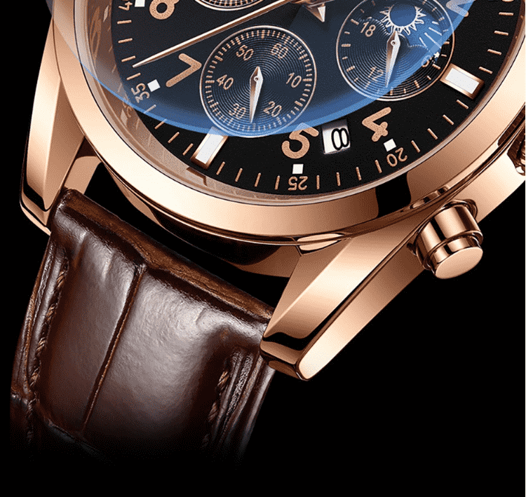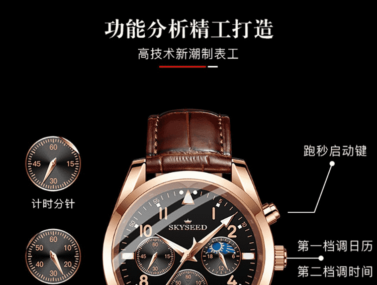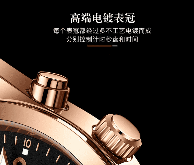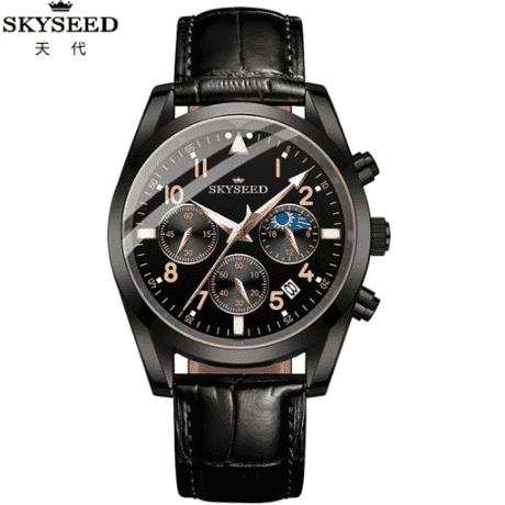 天代男士手表月相三眼大表盘日月星辰商务潮流炫酷防水男士石英腕表 【下单备注:玫金黑面皮带TD948 / 全黑黑面皮带TD948】