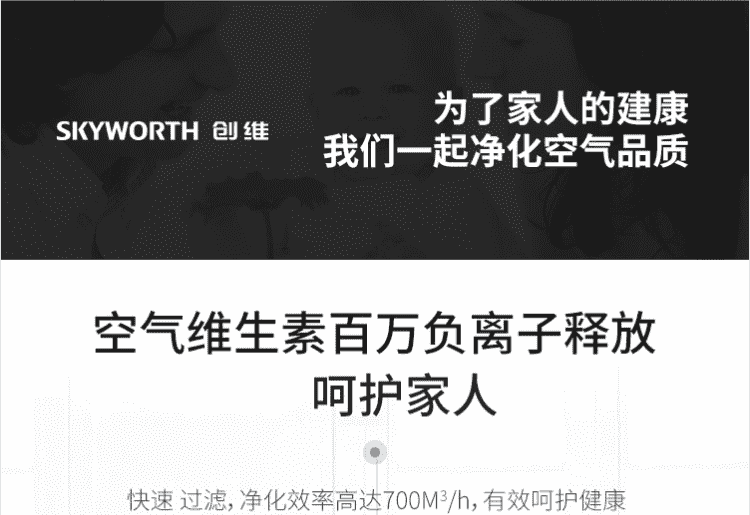 创维/SKYWORTH 空气净化器 除甲醛雾霾细菌过敏原二手烟 家用办公室空净 负离子净化