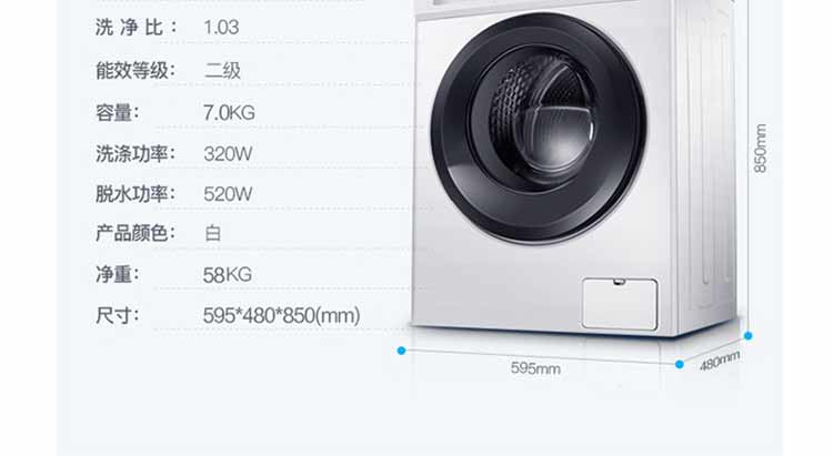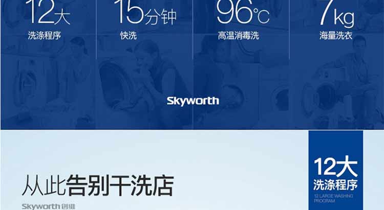 创维/Skyworh 滚筒洗衣机7公斤变频 除螨高温洗 节能静音 XQG70-A09SUQ