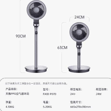 包邮-艾美特空气循环扇32档直流变频遥控电风扇家用涡轮换气扇循环对流风扇台桌两用落地扇天鹅PRO负离子遥控款FA18-RD70