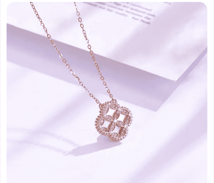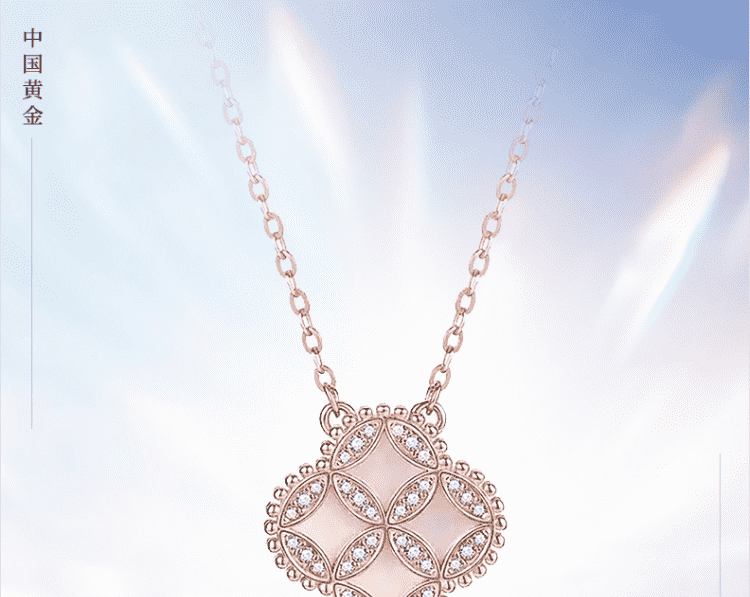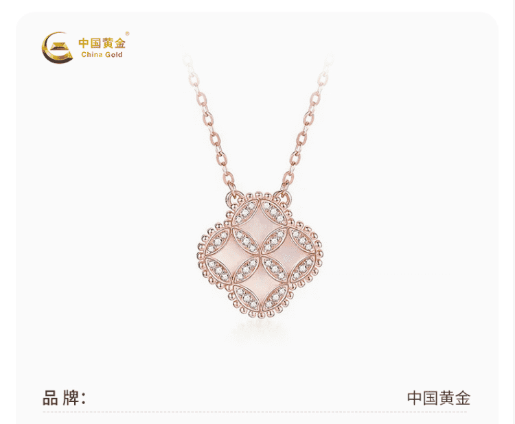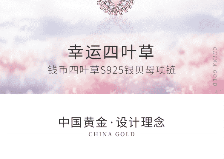 包邮-中国黄金 钱币四叶草S925银贝母项链ZGHJ220319 【新疆西藏不发货】