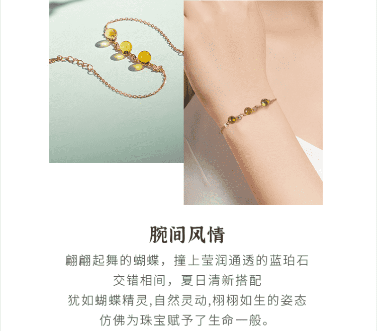 包邮-中国黄金 S925银镶蓝珀蝴蝶手链ZGHJ220599 【新疆西藏不发货】