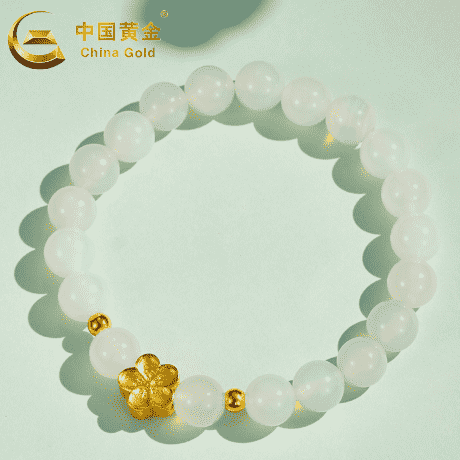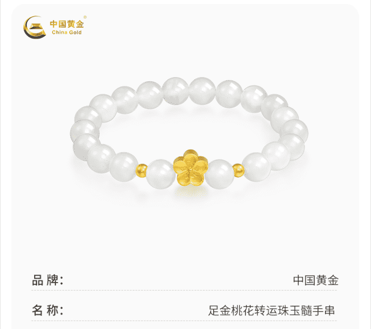 包邮-中国黄金 足金桃花转运珠玉髓手串ZGHJ220638 【新疆西藏不发货