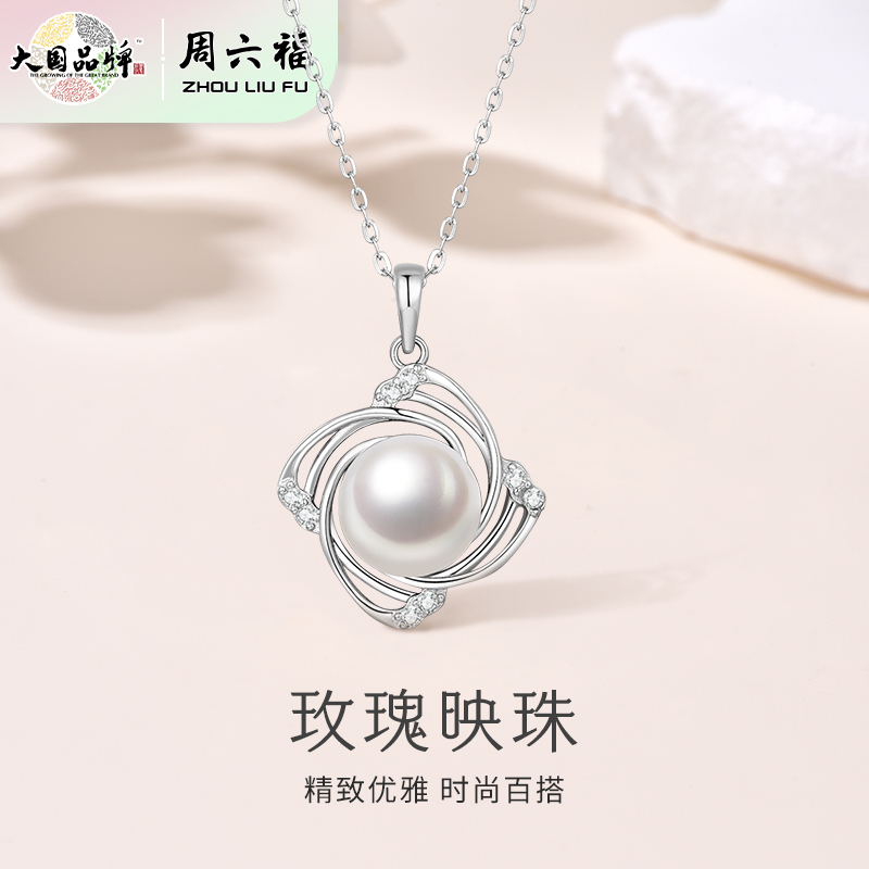 【每证一品】周六福S925银玫瑰映珠淡水珍珠吊坠ZLFX042375