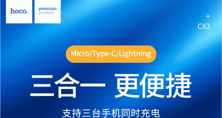 浩酷HOCO CX3 一拖三 快速充电线 苹果 安卓 type-c编织耐弯数据线