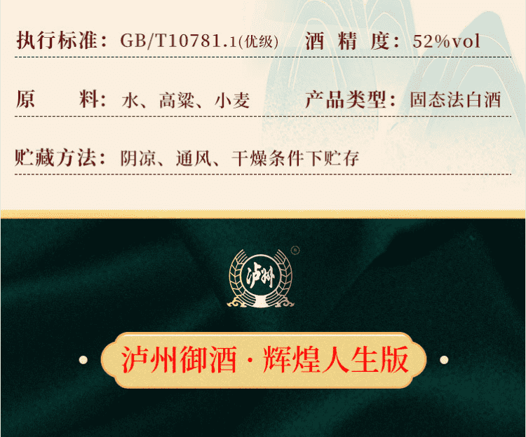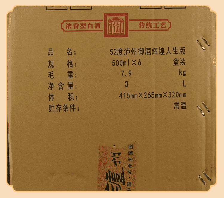 包邮 泸州御酒辉煌人生500ml * 6瓶 浓香型白酒52度 整箱