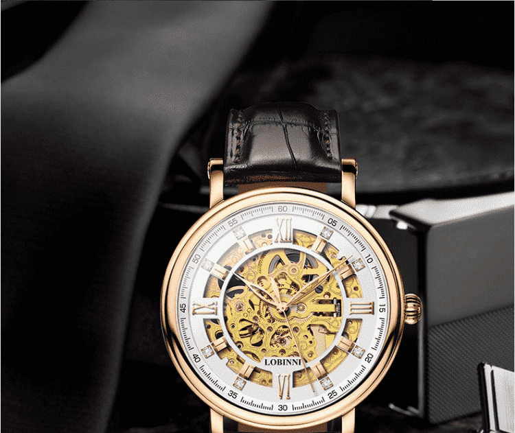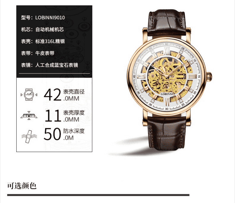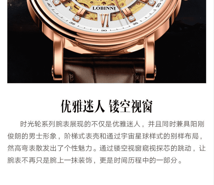 【镂空机械】罗宾尼(LOBINNI)品牌全自动 手表 男 机械表 镂空飞轮男士潮防水瑞士风格钢带男表 【时光轮系列:钢带款】金壳白面【9010】