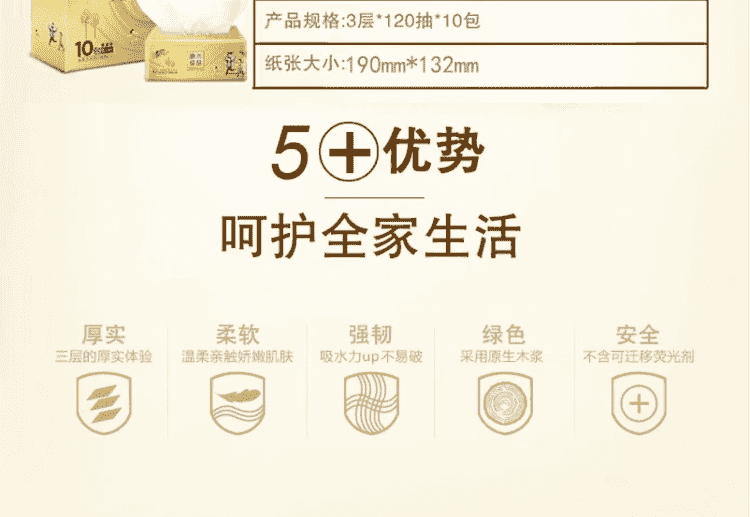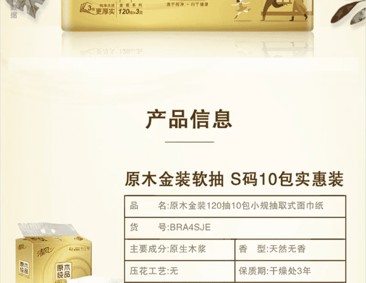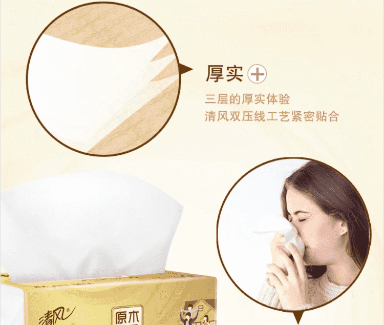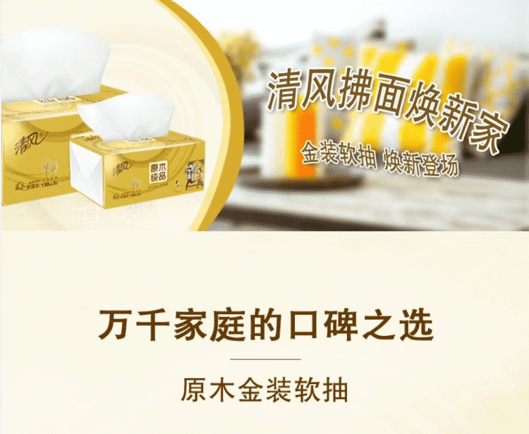 包邮-【1000抽】清风原木金装系列3层*100抽10包软抽面巾纸抽纸【新疆 西藏不发货】