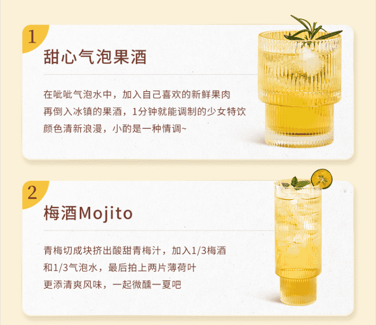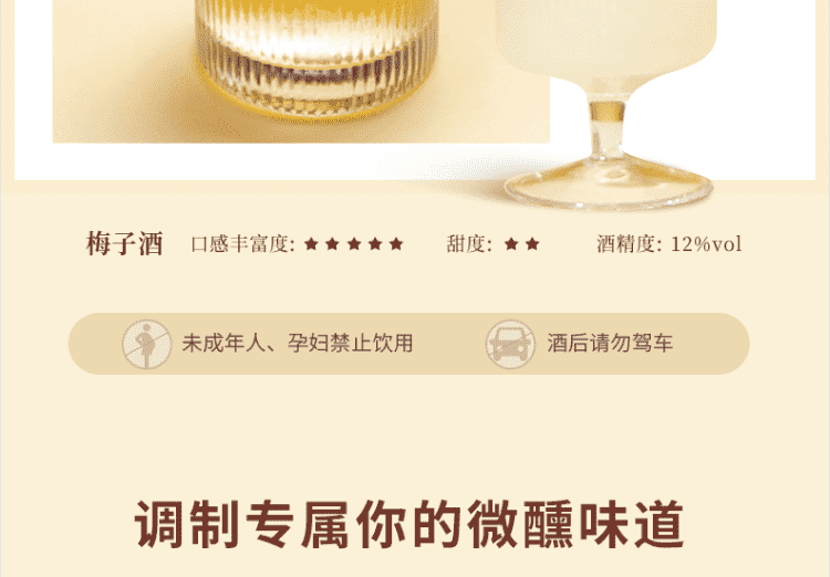 3、12度青梅酒2瓶装;4、7度柚子酒2瓶装。