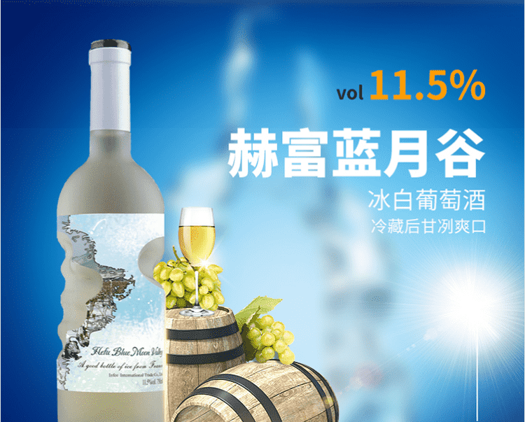 赫富蓝月谷冰白葡萄酒 手印蒙砂瓶750ml * 6瓶 法国原酒