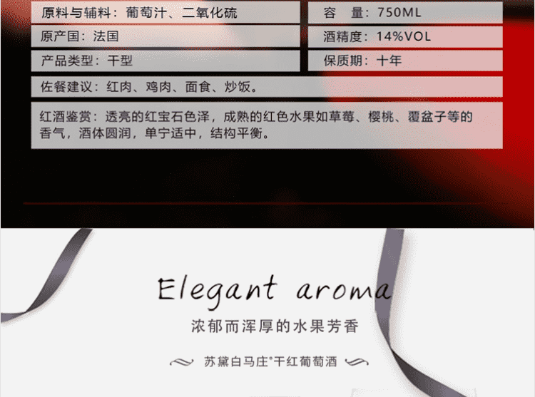 苏黛白马庄干红红酒葡萄酒750ml * 6瓶 法国进口14%vol