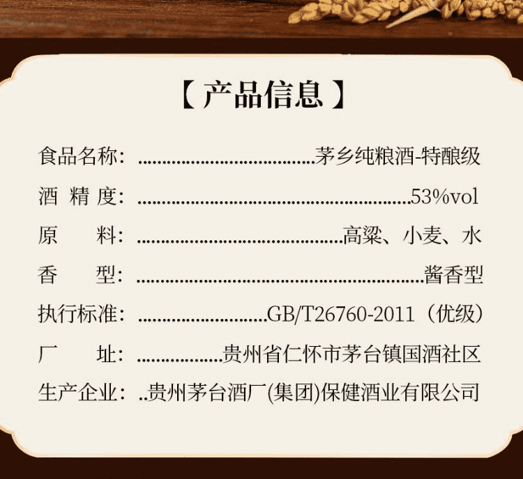 茅台集团茅乡纯粮酒53度 酱香型白酒500ml *6 瓶整箱装纯粮酒1978