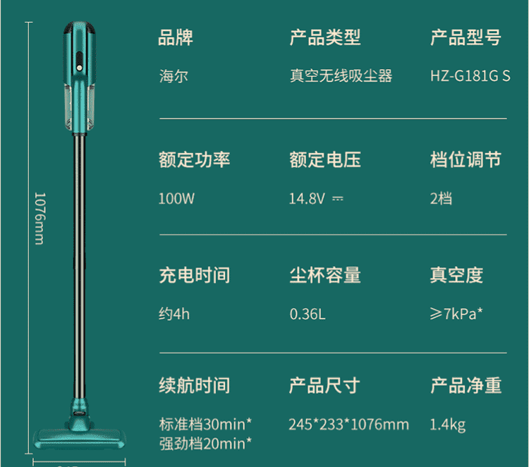 海尔/Haier 感恩礼 多功能无线吸尘器 手持家用办公便携式大吸力/一机多用可用于车载沙发宠物毛等 HZ-G181GS 普通区域包邮