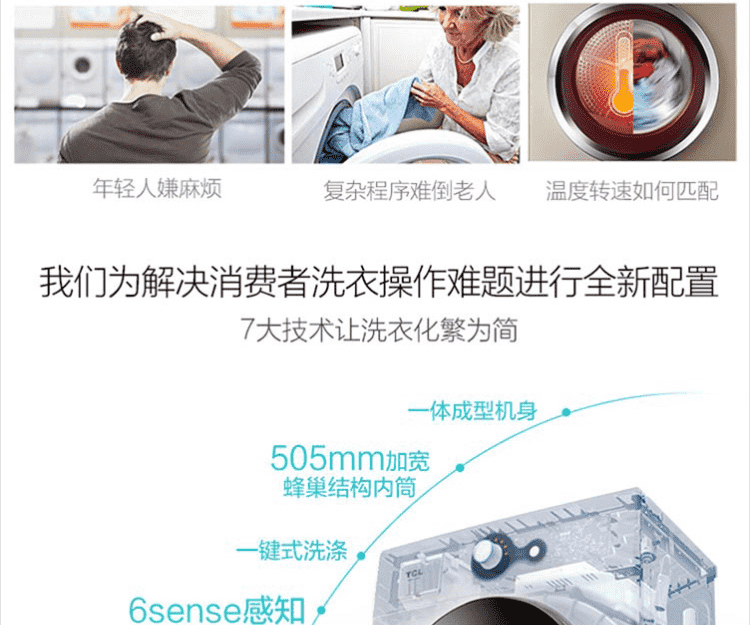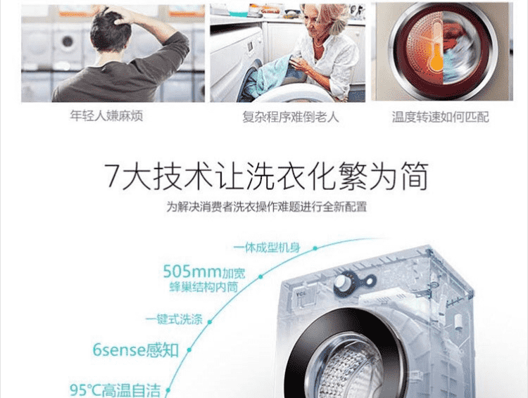 TCL7公斤高温除螨全自动滚筒洗衣机XQG70-QZ <独家专供> 中途添衣两个规格可选 芭蕾白 上排水 送货上楼