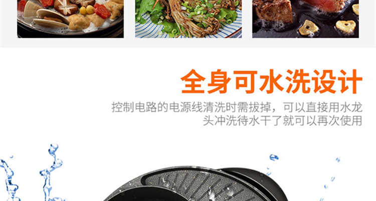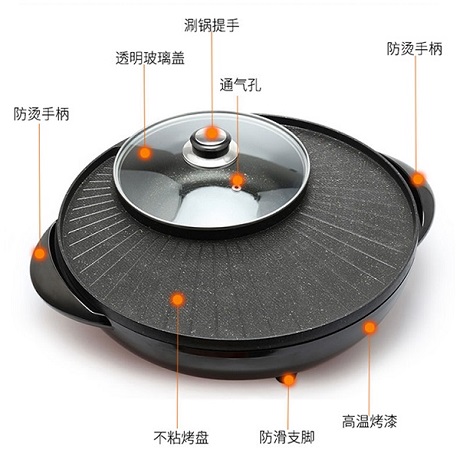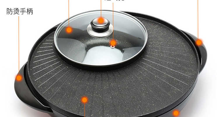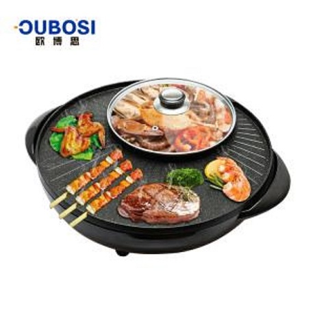 欧博思涮烤一体锅电烤盘日月锅电烧烤炉家用无烟电烤盘烤肉涮烤火锅JNS-DKP2-1400