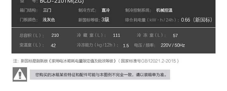 美的/Midea 210升 三开门小冰箱家用小型节能省电 低音冷藏冷冻 低温补偿 深冷速冻 BCD-210TM(ZG) 送货上楼