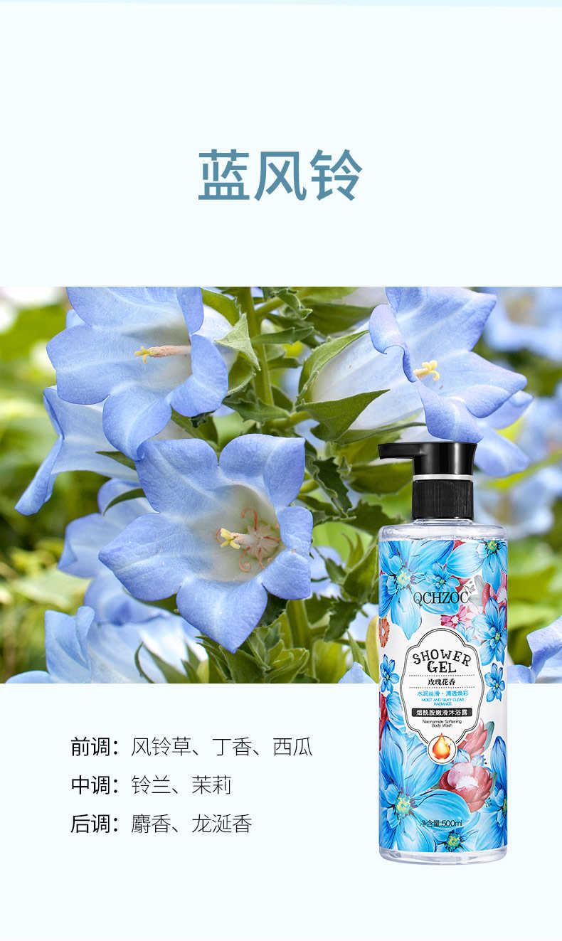 【3瓶不同味道】QCHZOC 花香系列烟酰胺亮肤滋润沐浴露(500ML蓝风铃沐浴露+500ML樱花沐浴露+500ML玫瑰沐浴露)(沐浴露3瓶组合装)【新疆西藏内蒙青海甘肃宁夏不发货】