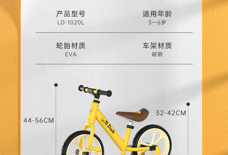 乐的B.duck小黄鸭联名儿童平衡车无脚踏2-3-6岁宝宝滑行车自行车学步滑步车LD-1020L【新疆西藏暂不发货】