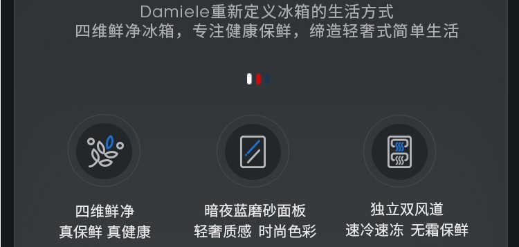 达米尼/Damiele 十字风冷冰箱 型号:BCD-426WKYSD 蔷薇蓝 送货上楼(新疆、西藏不发货)