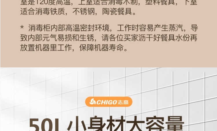 志高 单层立式餐具消毒柜RTP50 单门家用高温消毒柜