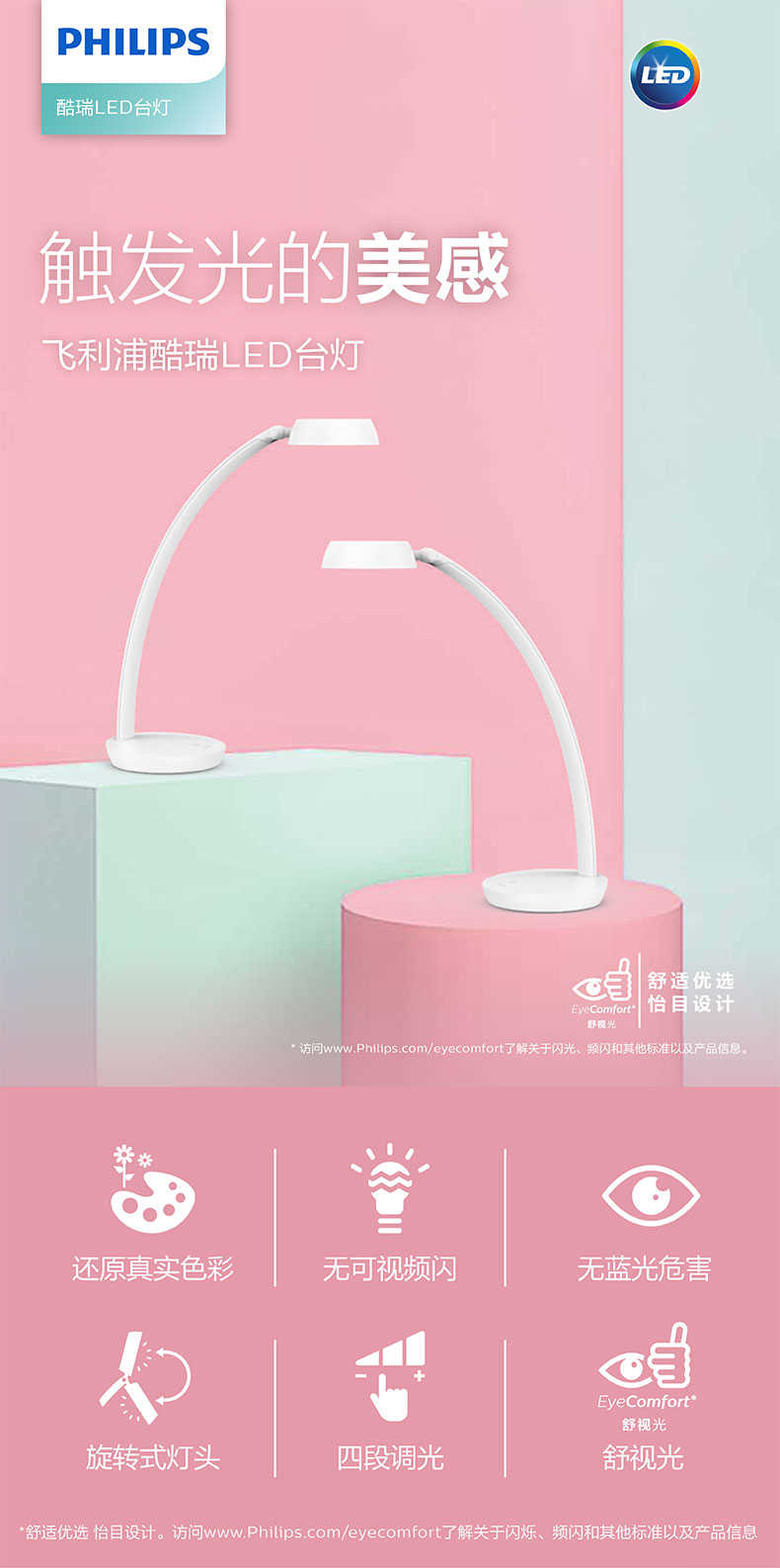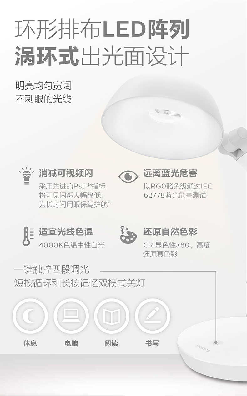 飞利浦LED酷瑞读写台灯床头灯写字灯阅读灯书桌学习台灯66109【新疆、内蒙古、宁夏、西藏、甘肃不发货】