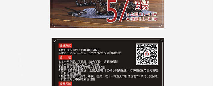 蟹王爷螃蟹精选2988型 5对十只装 大闸蟹 公蟹4.1-4.3两母蟹3.1-3.3两 【卡卷】