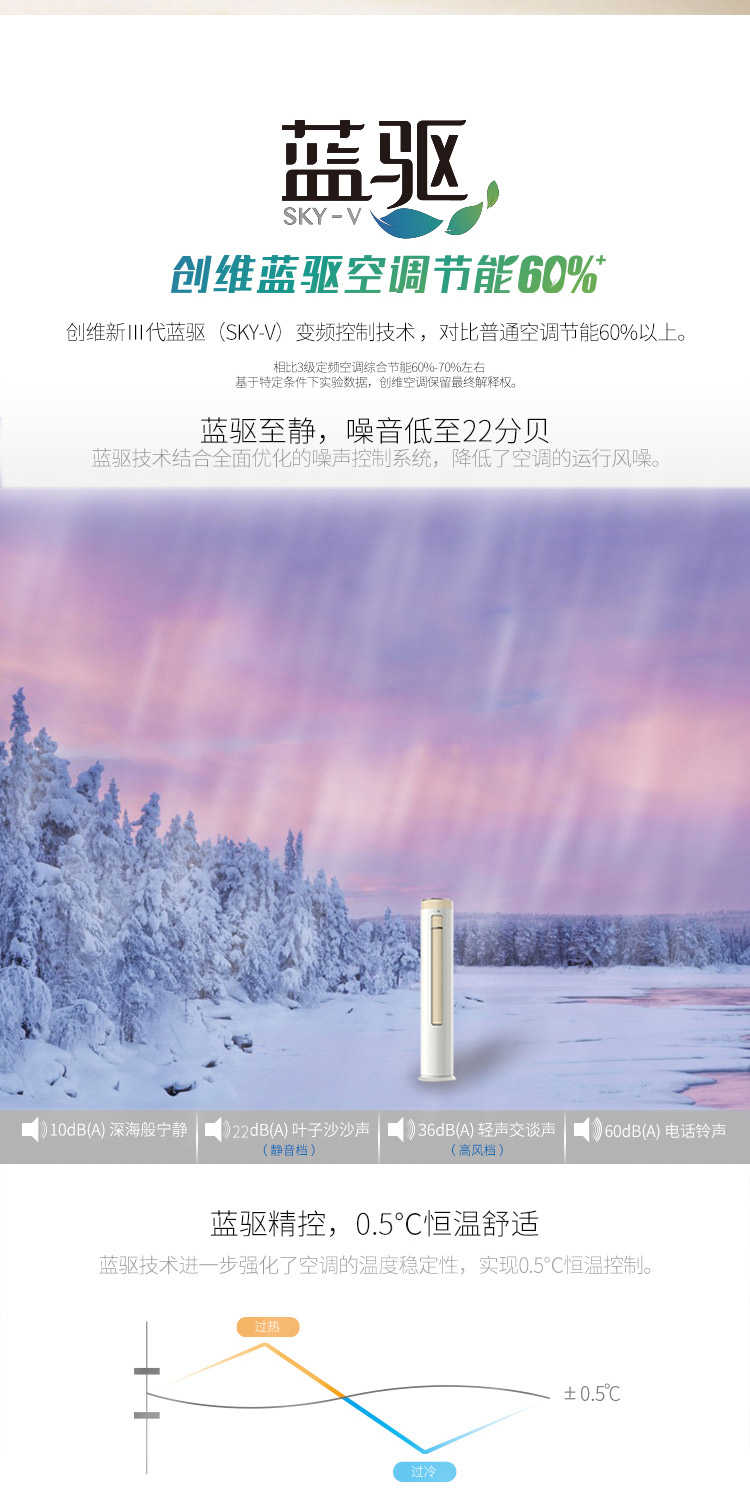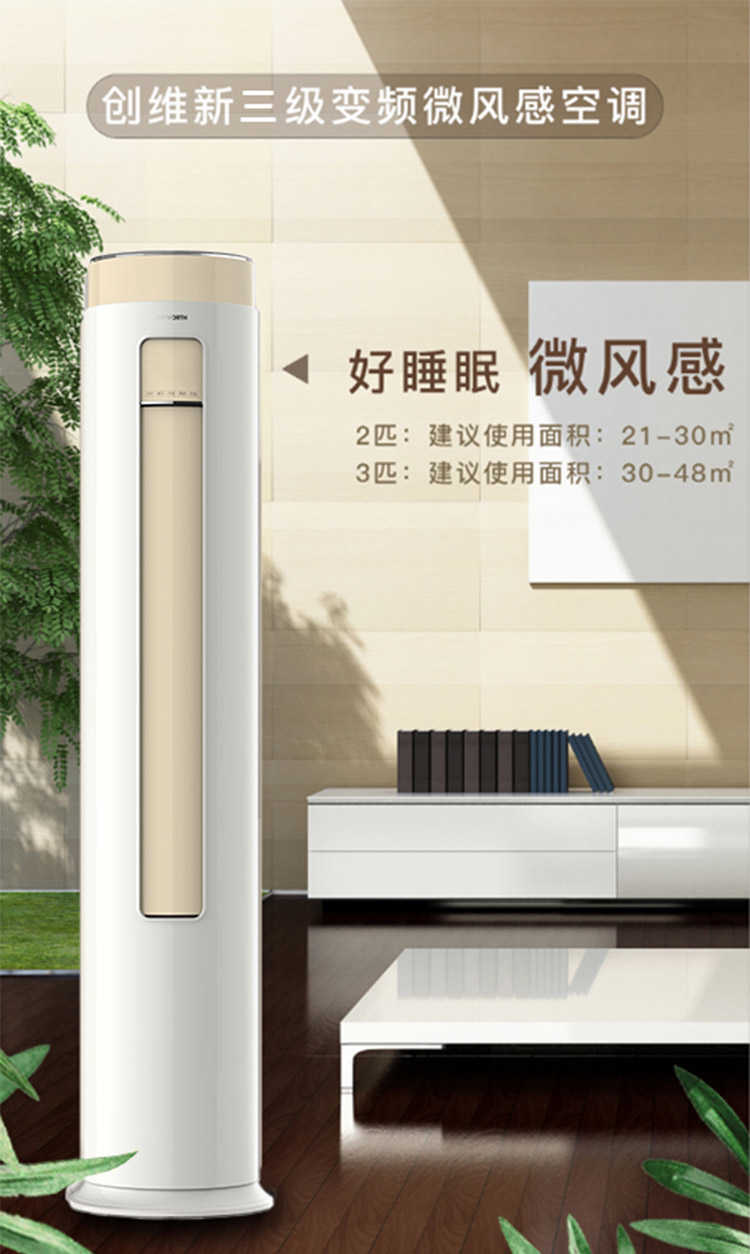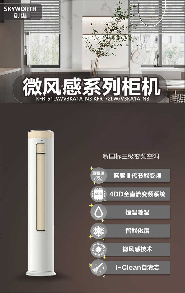 【全国包邮】创维(Skyworth)3匹 微风感 新能效 变频冷暖 自清洁 智能 圆柱空调立式柜机 KFR-72LW/V3KA1A-N3