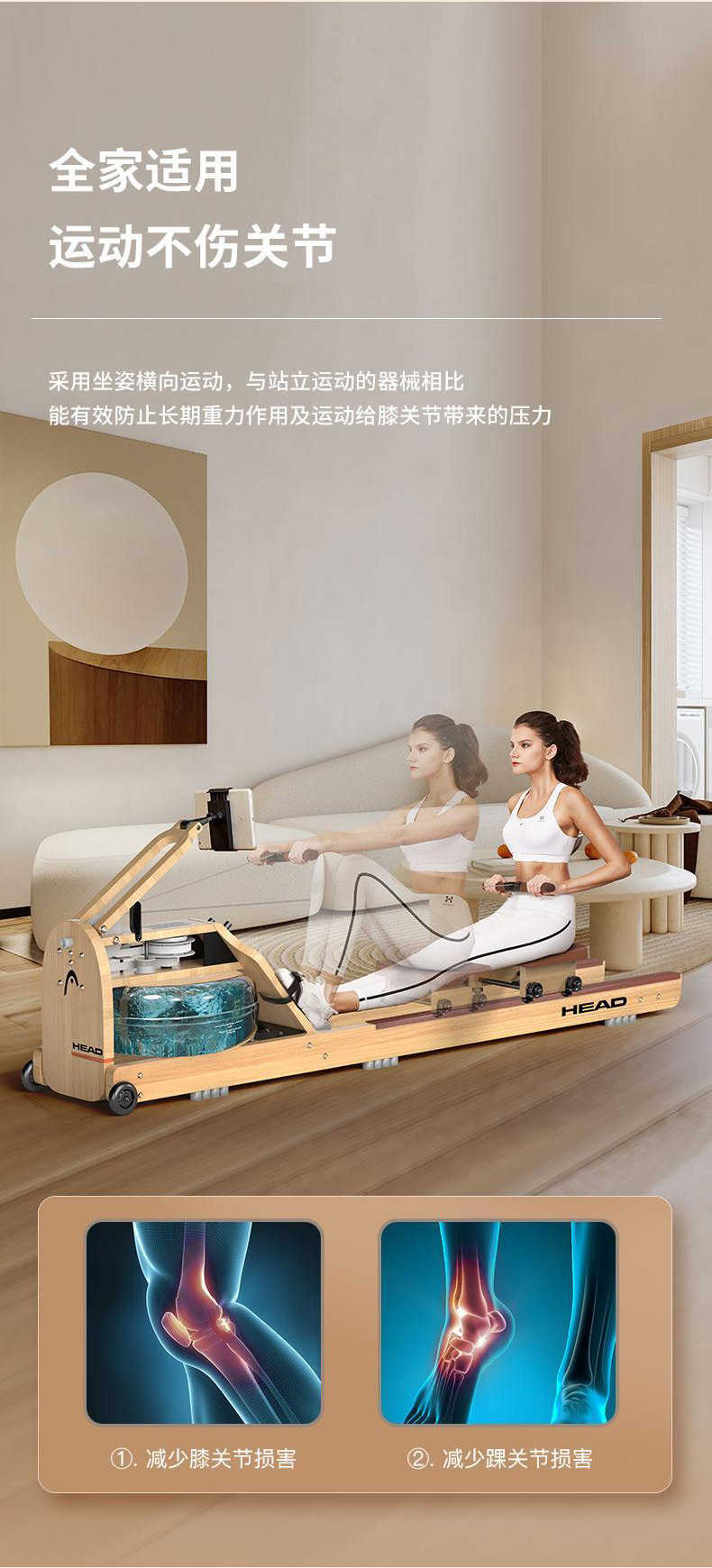 奥地利运动品牌HEAD海德 水阻划船机健身器 WR666 APP智能连接(软件下载:iconsole)
