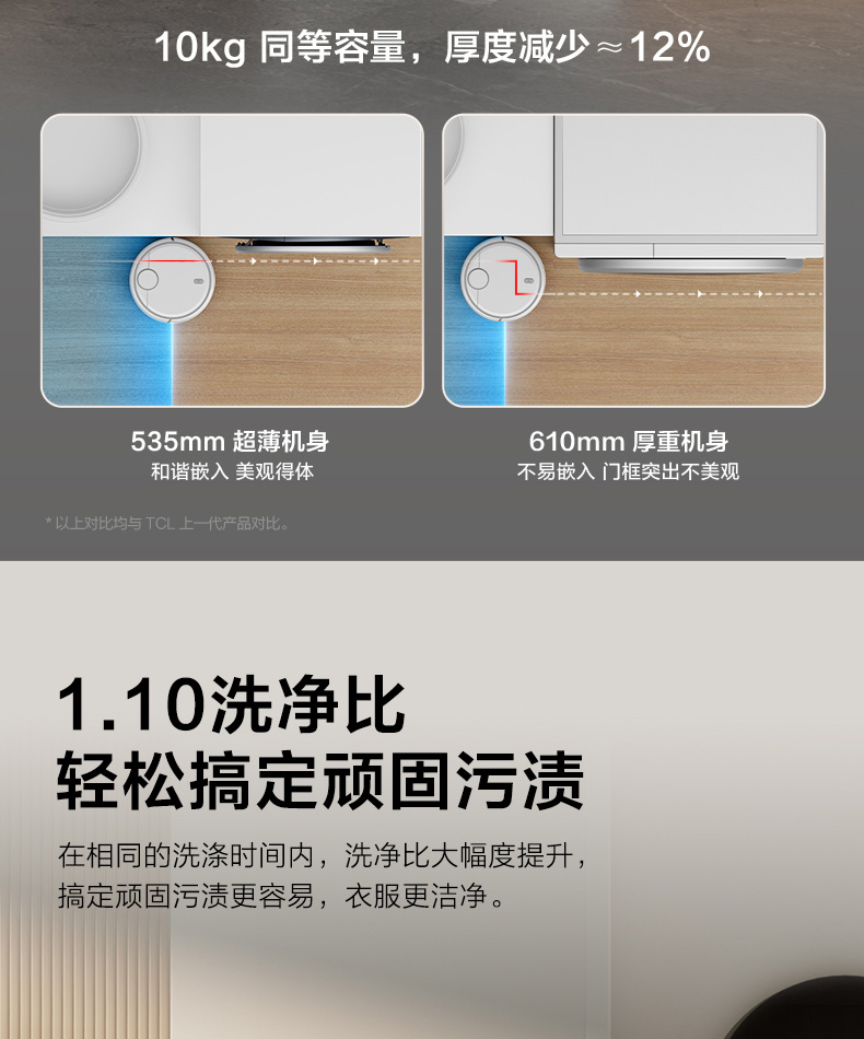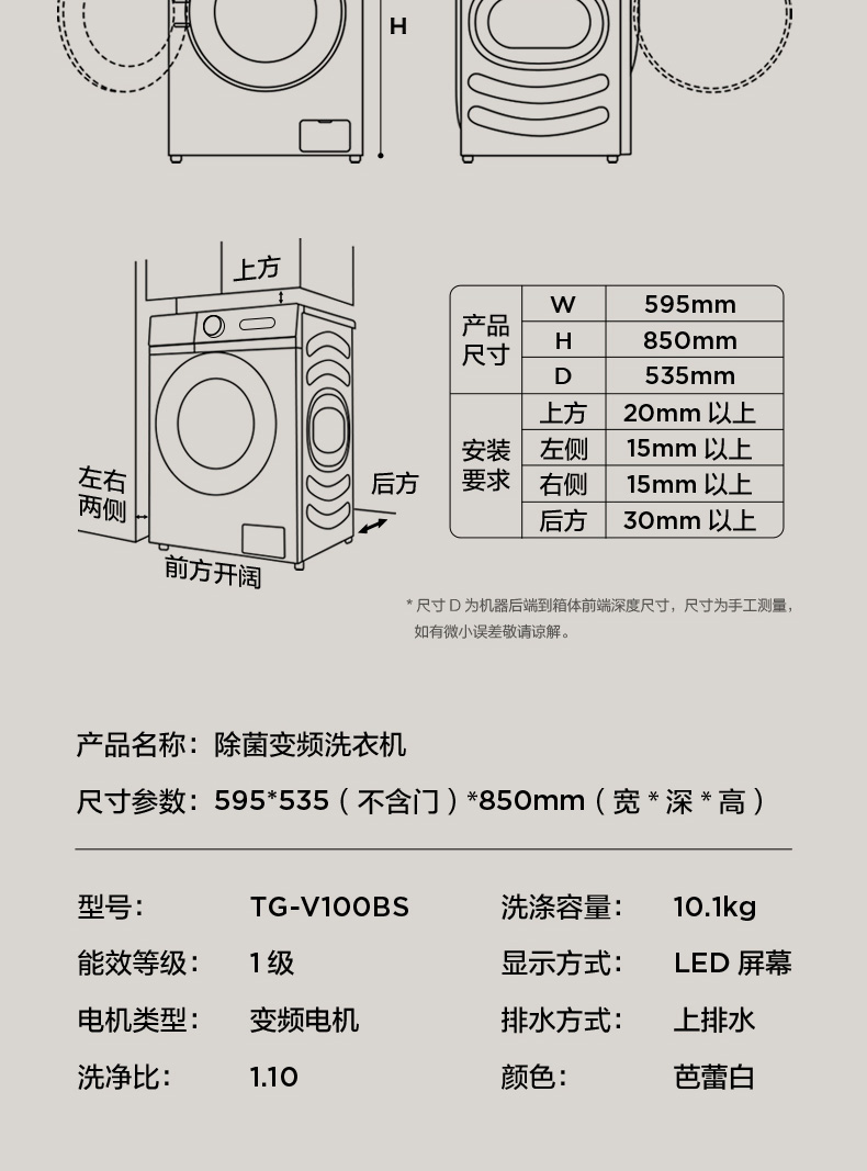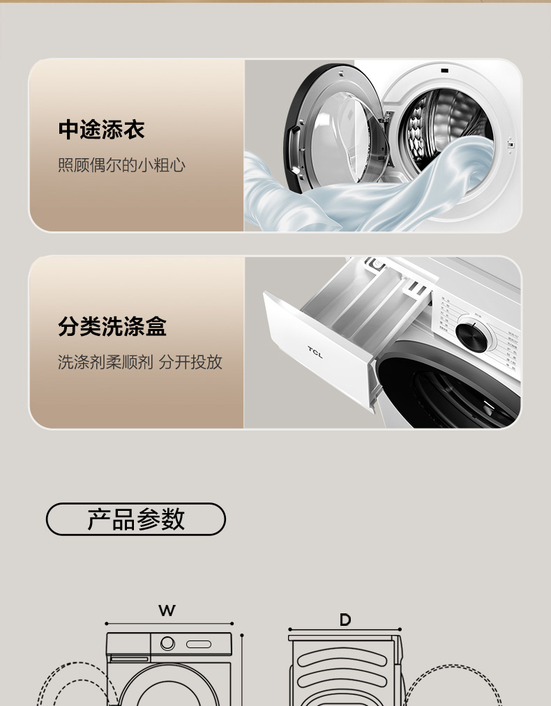 TCL 10.1公斤 家用大容量全自动变频滚筒洗衣机 TG-V100BS 芭蕾白 送货上楼 西藏不发货
