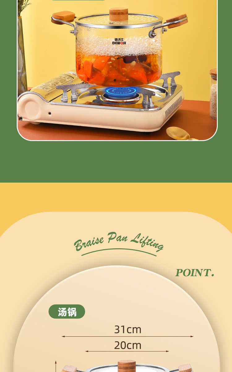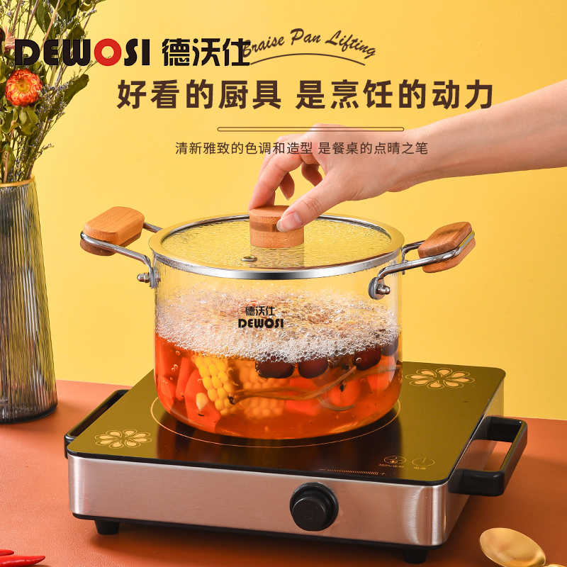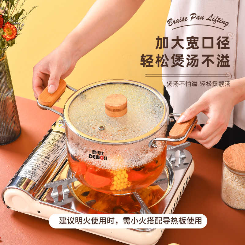 德沃仕 3.5L耐高温玻璃汤锅 双手柄 透明耐热炖锅