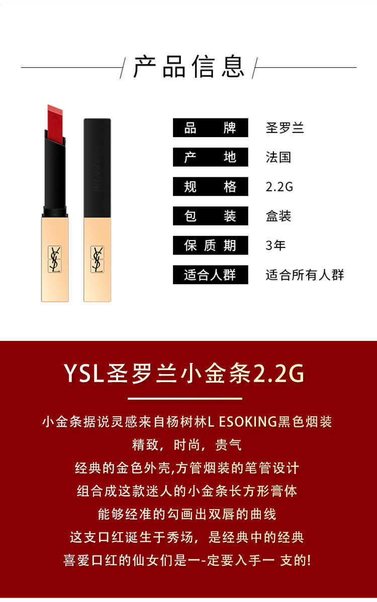 圣罗兰 细管纯口红 2.2g 两种颜色可选-持久显色口红礼盒礼物【新疆西藏、内蒙、青海、宁夏不发货】