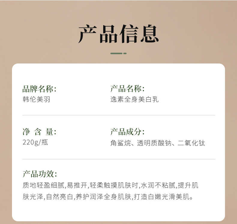 韩伦美羽逸素全身美白乳220g*3瓶【新疆西藏内蒙不发货】