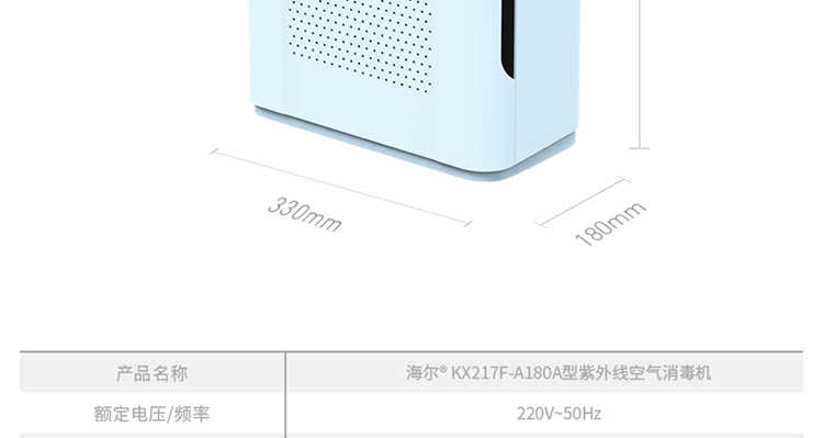 海尔 Haier 智能紫外线空气消毒机 多功能空气净化器 杀菌消毒 除甲醛 雾霾 颗粒物 家用消毒机 KX217F-A180A