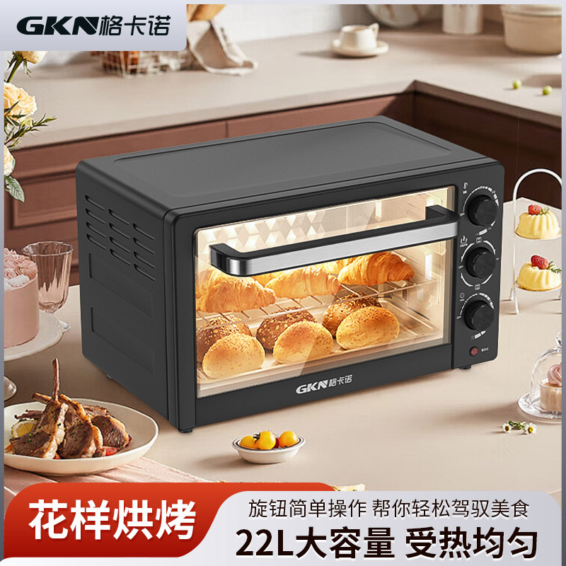 格卡诺三旋钮电烤箱家用多功能大容量烤箱烘焙蛋糕蛋挞可视化GKN-DKX-12(新)