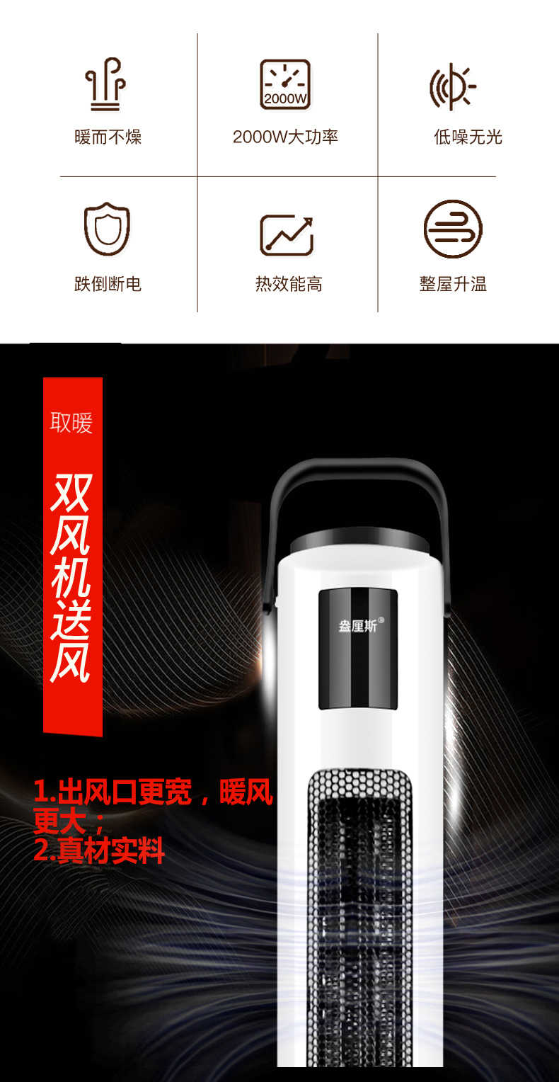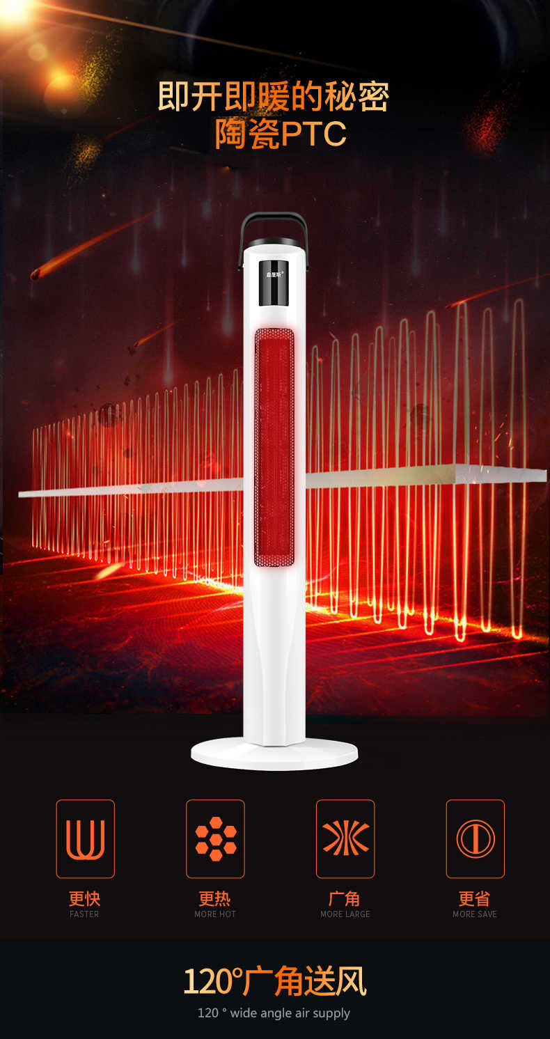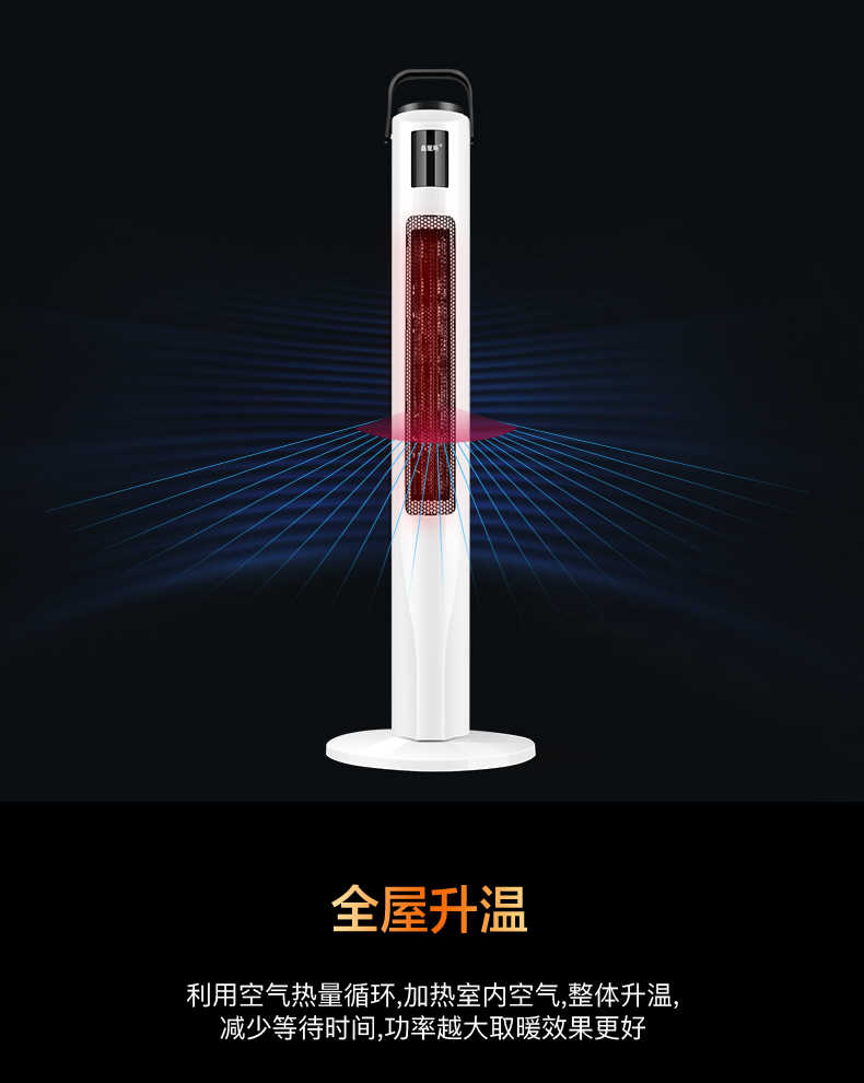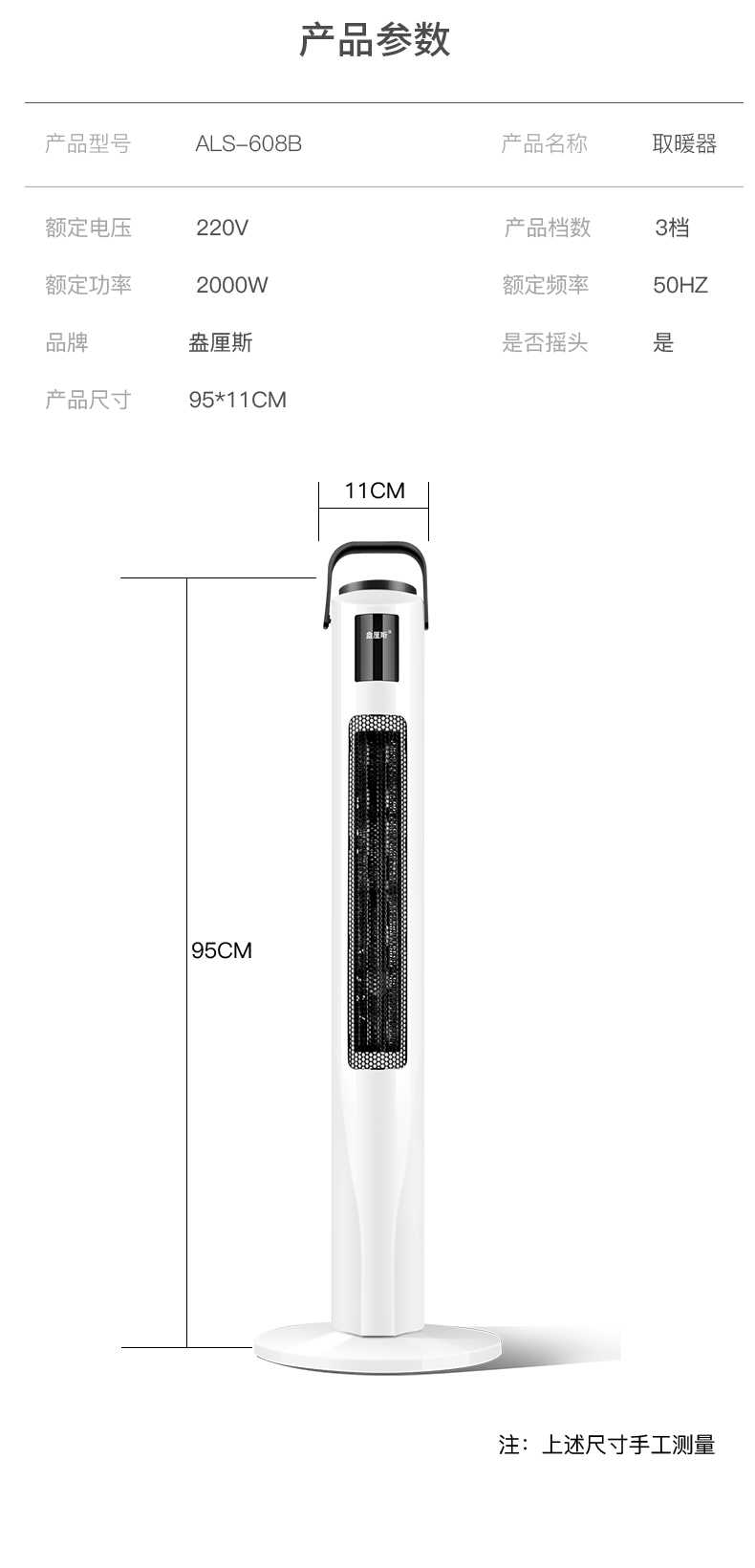 盎厘斯家用取暖器手提式电暖器节能立式电暖气暖风机防倾倒装置舒适暖风三档可调 高度90cm ALS-608B