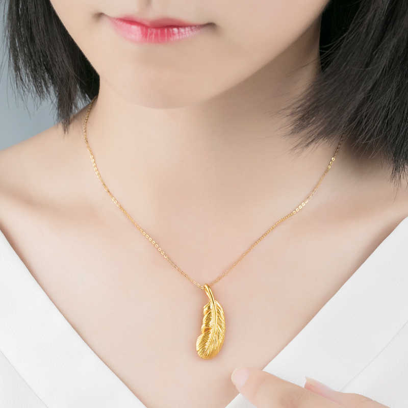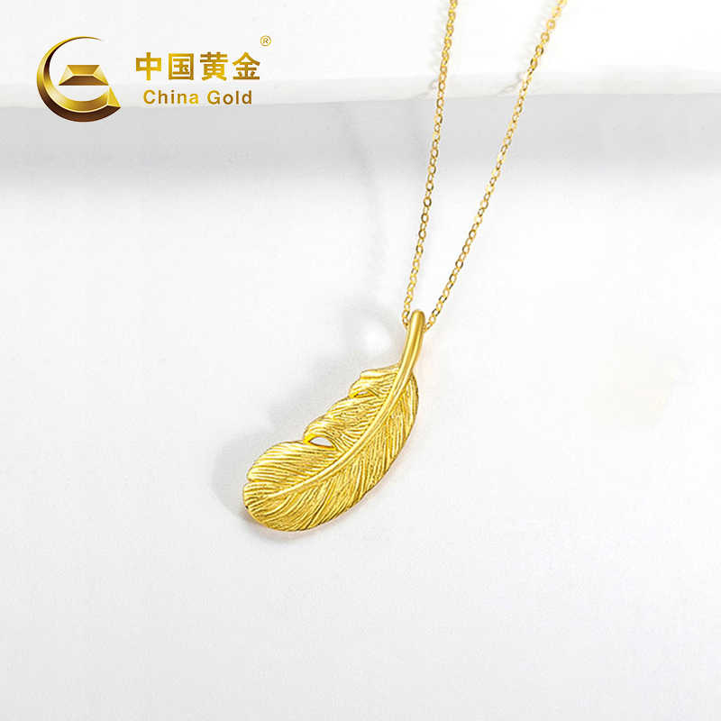 包邮-中国黄金 足金羽毛吊坠(送S925银链镀金色)ZGHJ220549(支持线下验货) 【新疆西藏不发货】